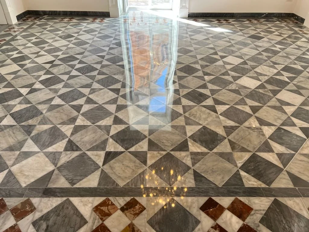 Interveniamo su pavimentazioni in marmo con tecniche specialistiche di restauro e consolidamento, mirate a preservarne il pregio estetico e la durabilità. Ogni superficie viene analizzata e trattata con metodi non invasivi, rispettando le caratteristiche originali del materiale